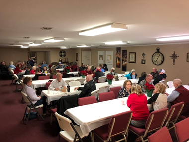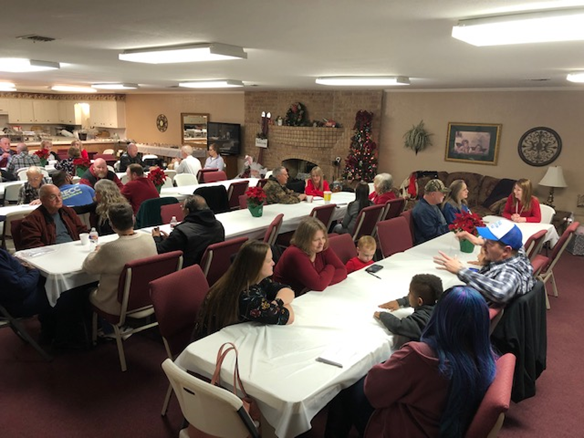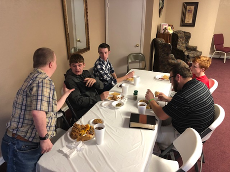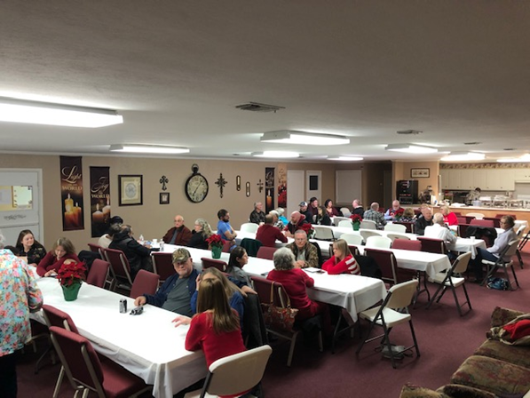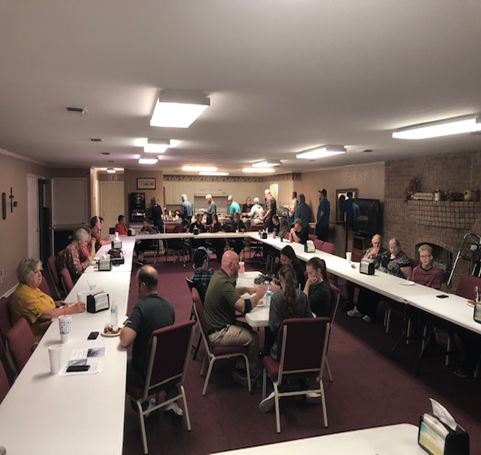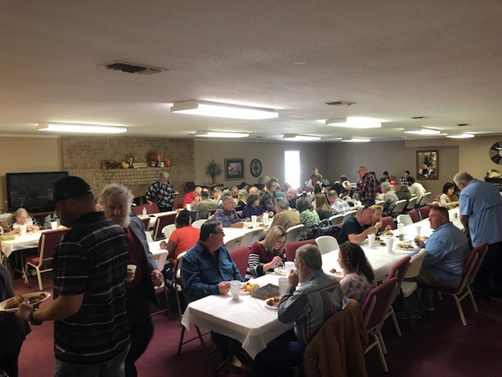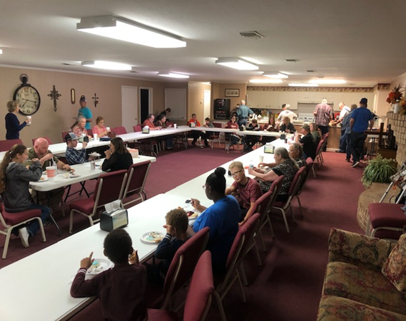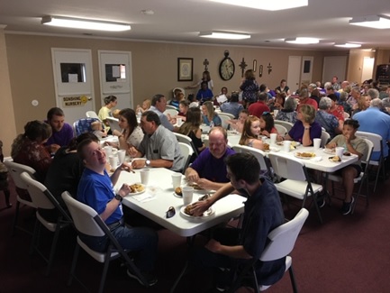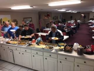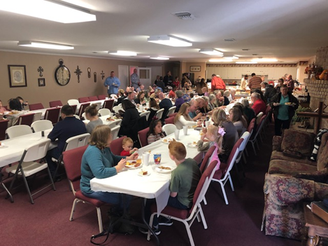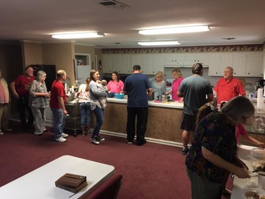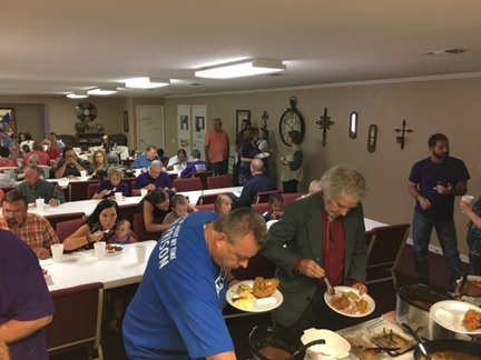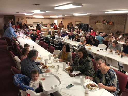 Church family enjoying the Missions Meal and message from Pastor Job . . . |